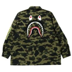 A Bathing Ape Men 1st Camo Shark Relaxed Fit Military Shirt (green)